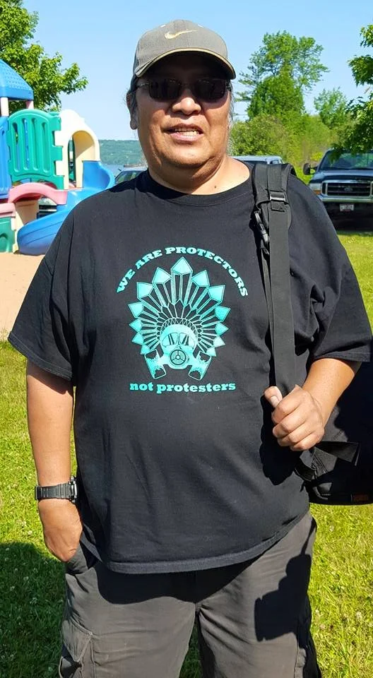 We Love our Water, and Manoomin (Wild Rice), not their dirty oil for Water is Life (Nibi Bimaadiziwin). Garment screen printed is part of our project: Jio Misawaabandaaming; how we envision our future, is a worldview of positive thinking. Creating: ‘mino bimaatiziiwin,’ a good life, here at Pine Point and Round Lake (White Earth territory).