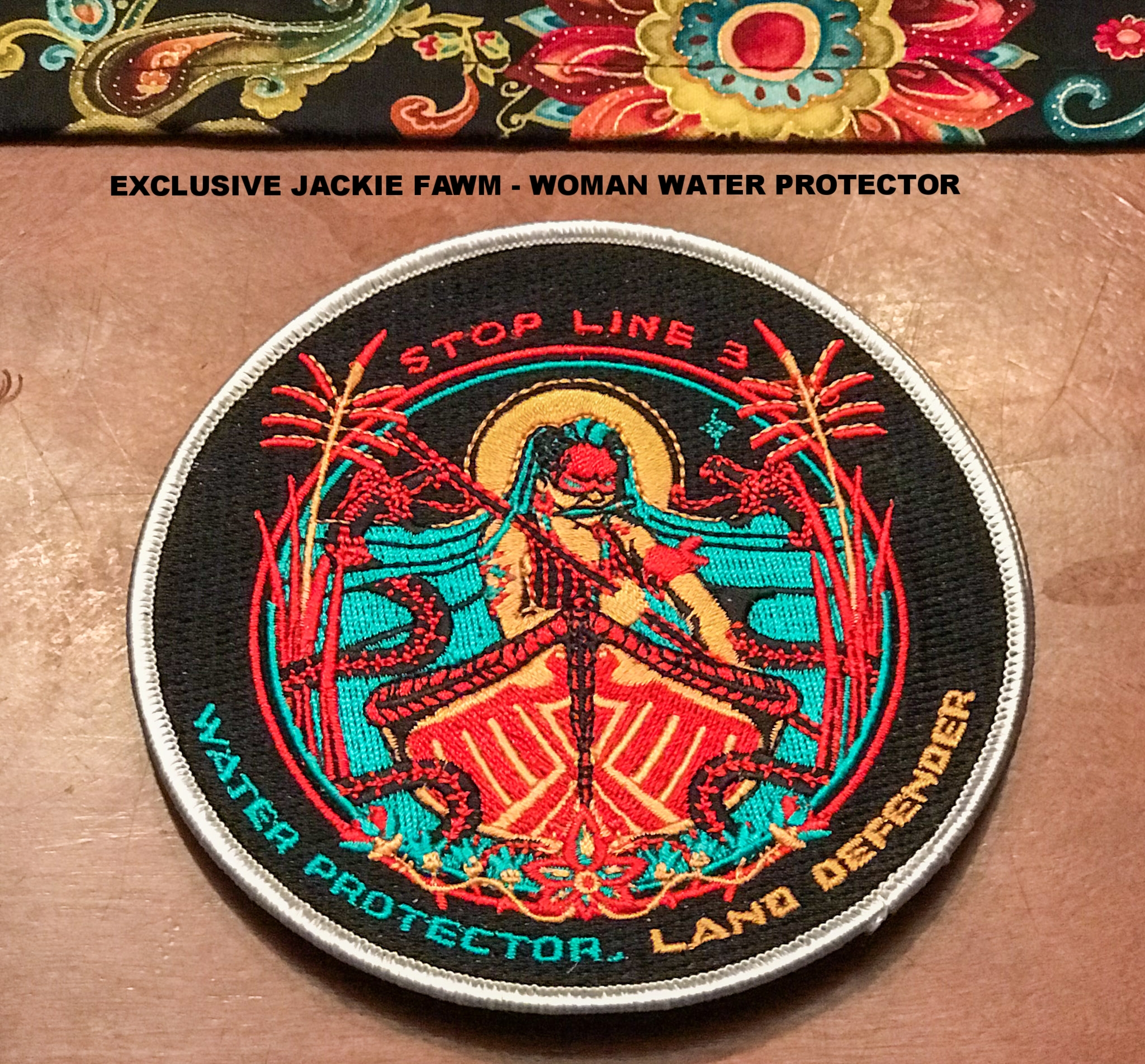 LIMITED EDITION Honor the Earth NEW COLLECTION! Specially designed for our "Water Protectors." Beautifully embroidered patches. They are "iron on," backing to help with adding to your favorite garment, bag or laptop sleeve or whatever you choose. The size of the embroidered patches are 4x4 (size of a softball). Floral Water Protector patch is 5.5”x2.5” approximately and super cute on denim jeans, and shorts.