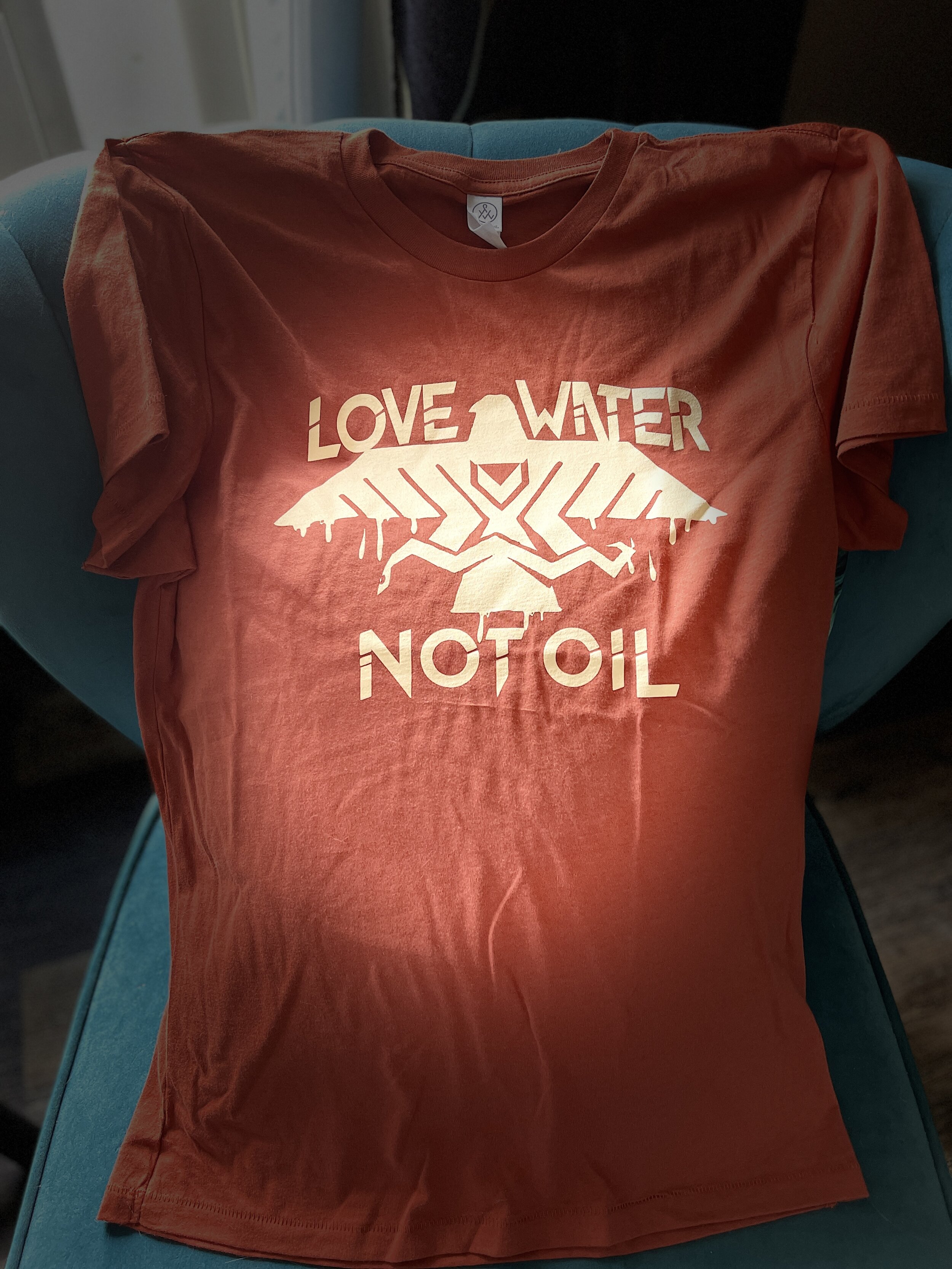 Official Love Water Not Oil design, revamped in vintage red clay or earth coal black to give you that vintage look. We love our lands and water. We continue to strive in stocking our garments to be eco or organic fabrics.