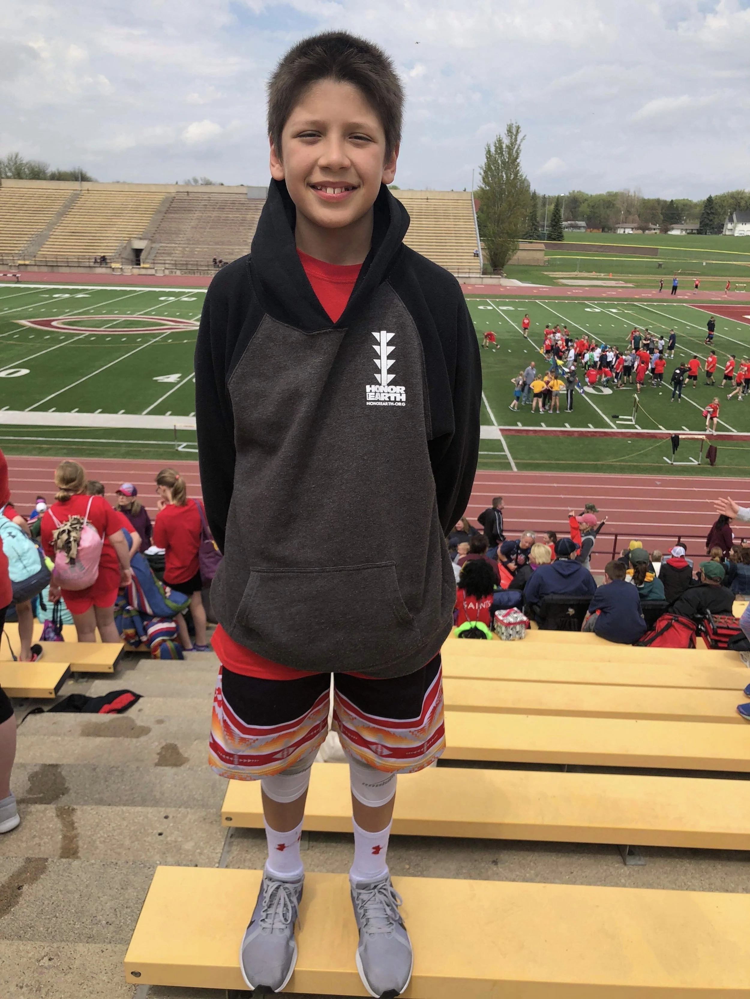 Design by Sarah LittleRedfeather Design. Features Honor The Earth logo on left front chest.